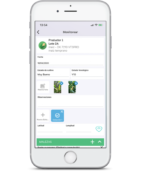 Por medio de la APP se releva toda la información del lote. Desde el barbecho, pasando por la siembra y los monitoreos hasta el destino final de tu producción.